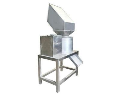 工作原理:飛刀繞自身軸線在固定不動(dòng)的底刀間隙內(nèi)旋轉(zhuǎn),從而使果蔬破碎,轉(zhuǎn)子上有四組飛刀,底刀為一組,視果蔬種類不同,出料斗有斗式和管式兩種型式。在進(jìn)料斗上部加上緩沖裝置,可得到粒度更細(xì)的物料。