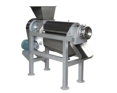 該機用途廣泛,可針對大型果蔬進行榨汁。物料經過一級破碎控制大小,再通過螺軸二級破碎向前推進,在螺旋的推進下受壓,其壓榨的汁液通過過濾網流入底部的盛汁器,而廢料則通過螺旋及調壓的錐形部分之間形成的環狀空隙排出。從而達到汁與渣自動分離的目的。