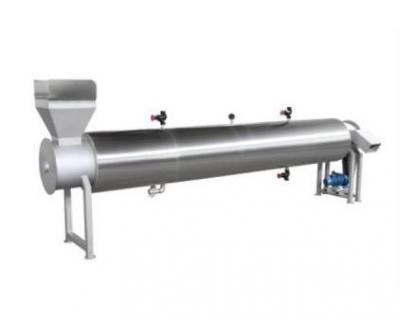 該機(jī)是螺旋推進(jìn)式連續(xù)軟化處理設(shè)備,水果在打漿之前為了提高水果的出漿率和出漿質(zhì)量,防止褐變,必須進(jìn)行軟化處理。預(yù)煮機(jī)的作用 是將經(jīng)過洗凈后的水果,進(jìn)行蒸煮軟化,本機(jī)可通過調(diào)速改變預(yù)煮時(shí)間以適應(yīng)不同果蔬的軟化。目的:1.破壞酶的活性,防止褐變和果膠水鮮,2.軟化果肉組織便于打漿和糖液滲透,3.使果肉組織中的果膠溶出,便于下道工序的加工。