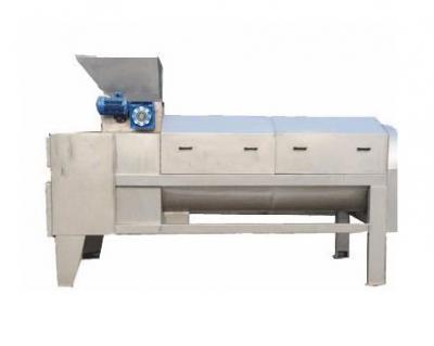 石榴從進(jìn)料斗進(jìn)入上壓碎裝置,上壓碎裝置將石榴壓開,下壓碎裝置再次將石榴擠壓,經(jīng)過(guò)兩級(jí)擠壓的石榴已基本皮籽分離,并落入分離裝置,石榴籽從篩孔落下,皮從尾部排出, 籽及汁用另配的螺桿泵送至下道工序。