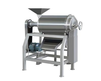 將物料放入篩管時,存在旋轉桿和導向角的作用,使物料沿圓柱體向出口端運動的軌跡為螺旋運動,刮刀與物料之間通過離心力和磨損在篩管之間運動。果汁和肉類(從收集器收集到紙漿在下一個過程中),皮膚和種子從圓筒的其他開放端排出,以實現分離。