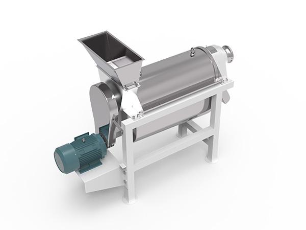 ★ 原料加入進(jìn)料斗中,在螺旋的推進(jìn)下受壓,其壓榨的汁液通過(guò)過(guò)濾網(wǎng)流入底部的盛汁器,而渣則通過(guò)螺旋與調(diào)壓頭的錐形部分之間形成的環(huán)狀空隙排出,調(diào)壓頭沿軸向的移動(dòng)可調(diào)整空隙的大小。用手順時(shí)針(從設(shè)備的出渣槽向進(jìn)料斗端看)轉(zhuǎn)動(dòng)手輪軸承座時(shí),調(diào)壓頭向左,空隙即縮小,反之則空隙變大。改變孔隙的大小,即調(diào)整排渣的阻力,即可改變出汁率。但如果孔隙過(guò)小,在強(qiáng)力擠壓下,部分渣的顆粒會(huì)和汁一起通過(guò)過(guò)濾網(wǎng)被擠出,盡管出汁率增加,但汁的質(zhì)量相對(duì)下降,因此孔隙的大小應(yīng)視用戶的具體工藝要求而定。